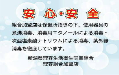 当店は厚生労働省並びに全国理容連合会の指導による衛生消毒に徹した