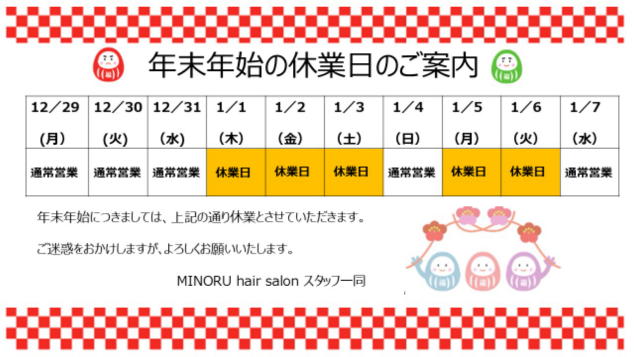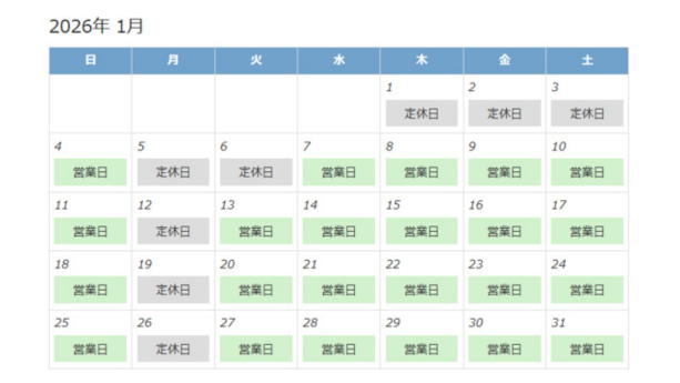 1月の定休日
