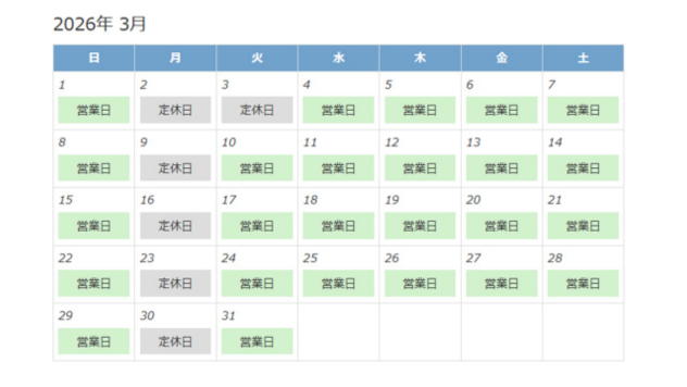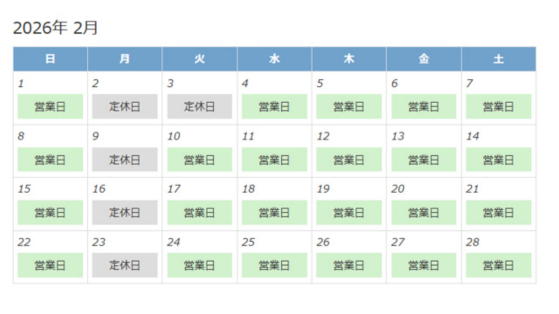 2月の定休日